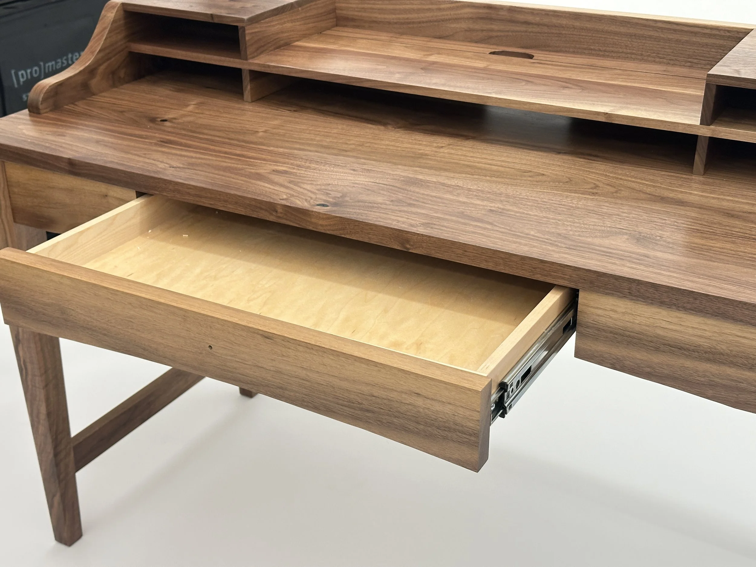 We began with a handpicked selection of solid American black walnut, chosen for its rich depth ,smooth continuous grain, and a perfect match for their space. This commitment to classic materials ensures that every touch offers a genuine, grounding connection to the natural material.